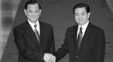 Chinas Staats- und Parteichef Hu Jintao und der taiwanesischen Vize-Präsident Lien Chan. (Archivbild) /