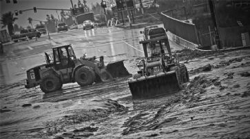 ![]() Meteorologen sagen für das Weihnachtswochenende aber schon wieder Sturm und Regen voraus, was die Aufräumarbeiten erschweren dürfte. Wegen eines arktischen Sturms aus dem Golf von Alaska, der mit feuchtwarmer Luft über dem Pazifik kollidierte, hatte die Westküste der USA rund eine Woche unter anhaltendem Niederschlag gelitten. In weiten Teilen Kaliforniens war der Regen in Rekordmengen gefallen. Anwohner berichteten, sie hätten regelrecht vor Mauern aus Schlamm flüchten müssen. Zahlreiche Autos und vereinzelt auch ganze Häuser versanken in den Fluten. Bauernhöfe und Apfelsinenplantagen wurden verwüstet. Eine Autofahrerin kam ums Leben, als ihr Wagen in einen Fluss gespült wurde. Die Zahl der Verletzten blieb unklar.