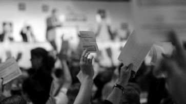 Gefährliche Entwicklung stoppen Im Gegensatz dazu gehe die Initiative davon aus, dass der Bürger nicht verantwortungsvoll mit der Waffe umgehen könne, sagte Maurer. Dies sei eine gefährliche Ansicht, die in eine Einschränkung des Stimmrechts münden könne - denn wer für verantwortungslos gehalten werde, könne ja auch nicht richtig stimmen oder wählen. Die Waffenschutzinitiative verlangt, dass die Militärwaffe aus dem Haushalt verbannt und im Zeughaus verwahrt wird.Parolenfassung an der Delegiertenversammlung der SVP. /