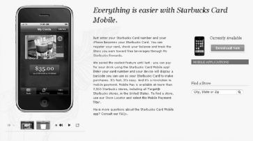 Mainstream als Ziel «Mobile Payment endlich in die Tat umzusetzen, ist gerade für ein Unternehmen wie Starbucks, das sich am Markt ständig neu erfinden und neben hochwertigen Produkten vor allem mit Innovationen punkten muss, ein richtiger Schritt», sagt der Schweizer Markenexperte Stefan Vogler. Dem Branchenbeobachter zufolge kann das Unternehmen auf diese Weise noch stärker seine junge Zielgruppe an sich binden. «Langfristige Kundenbindung erreicht man nur durch Pioniertaten wie diese», so Vogler. Bei der technischen Umsetzung macht sich Starbucks die Erfahrungen von Dienstleistern wie Square, Venmo, Bling Nation oder eBays PayPal zunutze. Obwohl diese Dot-Com-Start-ups bislang mehr oder weniger erfolgreich waren, dürfte die Einführung des US-weiten Mobile Payments durch Starbucks zum ersten Mal Mainstream-Charakter erhalten, meinen Experten. Besitzer von BlackBerrys, iPhones oder iPod Touchs laden sich die kostenlose App herunter.Teure technische Umsetzung Der Bezahlvorgang läuft einfach sowie benutzerintuitiv ab. Kunden halten ihre Smartphones an den Starbucks-Kassen bei geöffneter App vor einen Scanner.Setzt Trends: US-Kaffeehauskette Starbucks. /