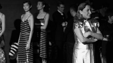 Miuccia Prada begutachtet den Laufsteg. /