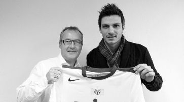 FCZ-Sportchef Fredy Bickel übergibt das Trikot an Mathieu Béda. / Foto: EQ Images