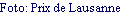 Nachwuchstänzer mit Prix de Lausanne geehrtLausanne - In Lausanne sind am Sonntag sieben Nachwuchstänzer mit dem 39. Prix de Lausanne ausgezeichnet worden. Sie erhalten die Möglichkeit, Kurse in einer grossen Tanzschule zu besuchen oder sich einer renommierten Kompanie anzuschliessen. Zudem bekommen sie ein Preisgeld von 16'000 Franken.ht / Quelle: sda / Sonntag, 6. Februar 2011 / 23:53 h