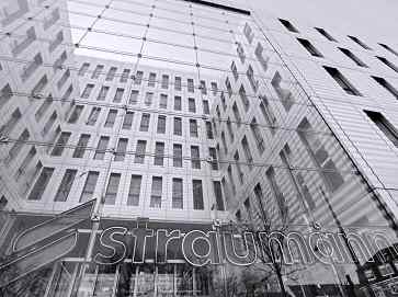 «Beeindruckende Leistung» Dabei habe Straumann 2010 eine «wirklich beeindruckende Leistung» gezeigt, sagte CEO Beat Spalinger vor den Medien. Das Unternehmen habe seine Ziele erreicht und sei dank Investitionen in Forschung und Entwicklung sowie ins Personal für eine Erholung des Marktes für Zahnrestaurationen und -ersatz gut gerüstet. Wichtigster Markt für Straumann blieb 2010 Europa mit einem Anteil von 60 Prozent am Umsatz. Mit 445 Mio. Fr. Das Firmengebeude der Straumann Holding AG in Basel. / Foto: EQ Images