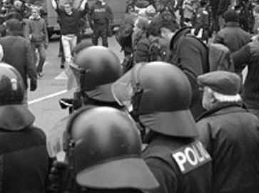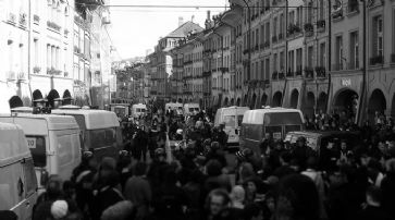 ![]() Die Gegenkundgebung bot Krawallmachern den Vorwand zum Aufmarsch. Prompt kam es zu Auseinandersetzungen und der Tag endete in wüsten Ausschreitungen, denen die Polizei trotz Grossaufgebot nur mit Mühe Herr wurde. Allen voran wurde der links-extreme, anarchistische «Schwarze Block» für viele der Ausschreitungen verantwortlich gemacht. Laut damaligem SP-Präsident Hans-Jürg Fehr war dieser ebenfalls mitverantwortlich an dem für die SVP glücklichen Ausgang der Wahlen im Jahr 2007. Demoreglement nicht verschärft Nauses Vorgänger, Stephan Hügli, musste nach den Vorfällen vom 7. Oktober 2007 harsche Kritik einstecken. Letztlich waren sie mitverantwortlich, dass Hügli bei den nächsten Wahlen von seiner Partei fallen gelassen und nicht mehr wiedergewählt wurde. Nach den Krawallen wurden umgehend Rufe nach einer Verschärfung des Kundgebungsreglements laut. Die Stadtberner Bevölkerung lehnte dies jedoch schliesslich ab. Eine Beschränkung von Kundgebungen auf Plätze und damit das Verbot von Demonstrationszügen durch die Stadt befand das Verwaltungsgericht für unverhältnismässig.