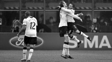 Der Konter zum Sieg Als sich die Mailänder in der Schlussphase immer stärker auf Reklamieren und Fouls konzentrierten, schlugen die Gäste zu. Nach einem blitzschnellen Konter über Aaron Lennon stand Peter Crouch am richtigen Ort, um die Hereingabe aus elf Metern sicher im Mailänder Tor unterzubringen. Die Italiener schafften zwar in der 94. Minute noch den vermeintlichen Ausgleich durch Zlatan Ibrahimovic, doch der Schwede hatte vor seinem Fallrückzieher den Gegenspieler in den Rücken gestossen.Die unfaire Gangart der Italiener Die Engländer verdienten sich die Sympathien des neutralen Fans auch deshalb, weil sie sich durch den Gegner nie provozieren liessen. Mathieu Flamini, der vier Jahre bei Arsenal spielte, schien noch eine Rechnung an den Londonern begleichen zu wollen, als er 20 Minuten vor Schluss mit gestreckten Beinen gegen Vedran Gorluka einstieg und mit der Roten Karte hätte bestraft werden müssen. Kurz darauf beanspruchte auch Gennaro Gattuso viel Glück, dass er für eine Tätlichkeit an einem englischen Betreuer nicht vom Platz gestellt wurde. Gattuso sah dann aber kurz darauf für Reklamieren die gelbe Karte und fehlt im Rückspiel.AC Milan - Tottenham Hotspur 0:1 (0:0) San Siro. - 62'000 Zuschauer. - SR Lannoy (Fr). - Tor: 80. Crouch 0:1. AC Milan: Abbiati (18. Aaron Lennon (Nr. 7) umarmt Siegestorschütze Peter Crouch. / Foto: EQ Images