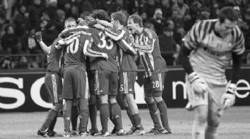 Inter war gefährlicher Inter Mailand, das seinen ersten Europacup-Auftritt unter Trainer Leonardo hatte und ohne den verletzten Topskorer Diego Milito antreten musste, war über weite Strecken die gefährlichere Mannschaft, liess aber zu viele Chancen aus. Samuel Eto'o sorgte im gegnerischen Strafraum für Aufruhr, doch scheiterte der Stürmer stets an Thomas Kraft. In der 28. Minute rettete der Bayern-Keeper sein Team mit einer Glanzparade vor einem Rückstand, in der 57. Minute scheiterte Eto'o erneut an Kraft, Esteban Cambiasso schoss den Abpraller aus nächster Nähe übers Tor. Kraft war ein grandioser Rückhalt für sein Team und zeigte eine starke Partie. Der 22-Jährige hatte erst Mitte Januar sein Bundesliga-Debüt gegeben und bestritt erst seine dritte Partie in der «Königsklasse». Zuletzt stand er beim 3:0-Sieg der Bayern gegen Basel zwischen den Pfosten. Was Eto'o bei den Mailändern, war Arjen Robben bei den Bayern - ein ständiger Gefahrenherd. Nach einem Freistoss des Holländers (24.) landete Franck Ribérys Kopfball an der Latte. In der 53. Minute dribbelte sich Robben durch die italienische Abwehr und traf bei seinem Abschlussversuch nur den rechten Aussenpfosten. Die Vorbereitung zum Siegtreffer war die Krönung für die starke Leistung Robbens.Programmiertes 0:0 in Marseille Das torlose Remis im ausverkauften Vélodrome war fast ein logisches Resultat. Olympique Marseille kassierte in der Champions League zuletzt im letzten September oder vor 512 Minuten einen Gegentreffer. Den Südfranzosen stand eine ähnlich starke Defensive gegenüber. Manchester United hatte in allen sechs Gruppenspielen der Saison nur ein Gegentor erhalten. Mit Verletzungssorgen war Marseille in dieses Hinspiel gegangen, nachdem Loïc Rémy, Brandão und Pierre-André Gignac am Wochenende gegen St. Etienne verletzt hatten ausgewechselt werden müssen. Letztlich konnte einzig Gignac nicht mittun; zudem sass der französische Internationale Mathieu Valbuena nach einmonatiger Verletzungspause wieder auf der Ersatzbank und kam für die letzten 12 Minuten zum Einsatz. Aufgrund der personellen Situation war das 0:0 für die Südfranzosen ein gutes Resultat. Die Chancen, sich erstmals seit 1992/93 wieder für die Viertelfinals zu qualifizieren, sind für das Team von Didier Deschamps immer noch intakt.Später Jubel der Gäste aus München. /