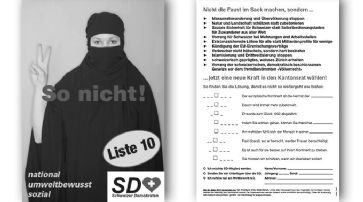 Corinne Bouvard, Sprecherin der Oberstaatsanwaltschaft, bestätigte am Freitag eine Meldung von «20Minuten», wonach die Justiz sich nun mit dem Kreuzworträtsel befasse. Das Flugblatt zeigt auf der Vorderseite eine Frau in einer Burka und die SD-Losung «So nicht! national - umweltbewusst, sozial».