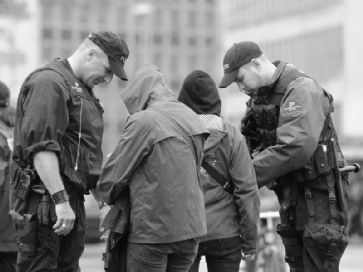 Zürcher Stadtpolizisten durchsuchen Demonstranten (Archiv). /