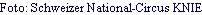 ![]() Maycol, der Mann von Géraldine Katharina Knie, ist zudem in Dressurnummern mit Lamas und mit Pferden zu sehen. Géraldine Katharina dagegen tritt in dieser Saison nicht auf. Am 4. März hat sie Töchterchen Chanel Marie zur Welt gebracht. Wann sie wieder in die Manege zurückkomme, sei offen, heisst es in der Programmschrift. Nicht mit dabei ist übrigens Elefantendame Sabu, wie Knie-Sprecher Niklaus Leuenberger Medienberichte bestätigte. Sie war letztes Jahr zweimal ausgerissen, habe «den Dreh raus». Der Zirkus will deshalb nichts riskieren. Nur wenige Stunden nach der Generalprobe stieg am Donnerstagabend die Saisonpremiere. Nach ein paar Tagen in Rapperswil bricht der Knie-Tross zur Reise kreuz und quer durch die Schweiz auf. An 42 Orten zeigt er insgesamt 347 Vorstellungen, bis es am 20. November in Lugano zum letzten Mal heisst «Manege frei - Vive le Cirque!».