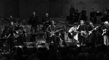 Paul McCartney und Eric Clapton auf der Bühne beim Tribute Konzert für George Harrison. /
