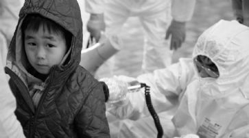 15. März 2011: Ein kleiner Junge aus der Präfektur Fukushima wird auf Radioaktivität untersucht. /
