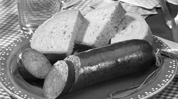 Würste - auf dem Tisch und an den Wänden Wer sich lieber gleich an den Tisch setzen möchte, kann dies in zwei Restaurants tun, die sich am Festival beteiligen. Gediegen im «1871», etwas einfacher in der Cafébar «Lokal».Die Ramswurst ist eine geräucherte Rohwurst aus Schweine- und Kuhfleisch. / Foto: Kulinarisches Erbe