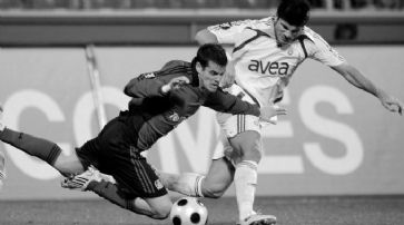 Baris Özbek (r.) im Zweikampf mit dem Schweizer Internationalen Tranquillo Barnetta. / Foto: EQ Images