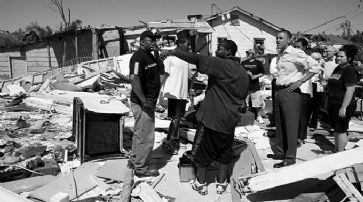 ![]() Allein in dem am schlimmsten betroffenen Bundesstaat Alabama kamen bei der Tornadoserie vom Mittwoch nach Behördenangaben mindestens 254 Menschen ums Leben, 1730 wurden verletzt. Acht Menschen wurden noch vermisst. Nach Angaben der Behörden starben durch die Tornados zudem jeweils 34 Menschen in Mississippi und Tennesse, 15 in Georgia, acht in Arkansas und fünf in Virginia. Besonders starke Zerstörungen richteten die Tornados in Tuscaloosa in Alabama an. Um die öffentliche Ordnung zu wahren und Plünderungen vorzubeugen, verhängte der Bürgermeister der 90'000-Einwohner-Stadt eine nächtliche Ausgangssperre. Sie galt von Sonnenuntergang bis 8 Uhr morgens. Obama verspricht Hilfe US-Präsident Barack Obama zeigte sich bei einem Besuch in Tuscaloosa tief bestürzt über das Ausmass der Schäden. «Ich habe noch nie so eine Zerstörung gesehen. Das ist herzzerreissend», sagte Obama nach einem Rundgang durch verwüstete Wohngegenden. Er versprach, die Regierung werde alles in ihrer Macht Stehende tun, um die zerstörten Gemeinden wieder aufzubauen. Der US-Präsident hatte bereits zuvor Hilfsmassnahmen angeordnet, darunter Gelder für die vorübergehende Unterbringung von obdachlos gewordenen Menschen und die Reparatur beschädigter Häuser sowie Kredite für Schäden an unversicherten Gebäuden.