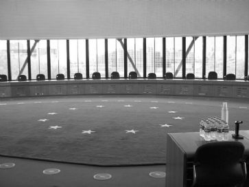 EGMR könnte Schweiz rügen Anfang März war der Amerikaner, wie andere Kunden der Grossbank, noch vor dem Bundesverwaltungsgericht gescheitert. Weil das Schweizer Recht bei internationaler Amtshilfe keinen Weiterzug ans Bundesgericht erlaube, gelange der Mann nun ans Gericht in Strassburg, erklärten die Anwälte. Der EGMR kann die Schweiz zwar nicht an der Datenlieferung an die USA hindern, er kann die Schweiz aber rügen. Bonnard und Grisel vermuten, dass noch weitere Kunden nach Strassburg gelangen. Das Bundesamt für Justiz hat laut der «Handelszeitung» keine Kenntnis von der Beschwerde. Die Grossbank UBS wollte sich gegenüber der Zeitung nicht äussern.Der Gerichtssaal des Europäischen Gerichtshofs für Menschenrechte. /