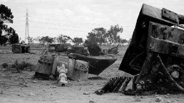 Von der französischen Luftwaffe zerstörte Gaddafi-Haubitzen zwischen Bengasi und Ajdabija. /