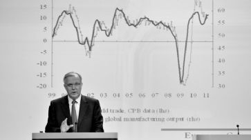 Olli Rehn präsentiert die Zahlen zur europäischen Wirtschaft. /
