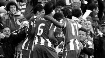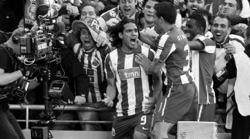 ![]() Torschütze Falcao (l.) wird von seinen Mitspielern gefeiert. /