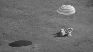 Landung der Sojus-Kapsel in der kasachischen Steppe. /