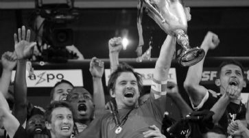 St. Gallen steigt ab Wesentlich dramatischer als das Meisterschaftsfinale verlief der Abstiegskampf. Am Ende war der FC St. Gallen der leidtragende Klub. Die Ostschweizer steigen direkt in die Challenge League ab, weil sie bei den Young Boys 2:4 unterlagen und das bisherige Schlusslicht Bellinzona sich mit dem 2:0-Heimsieg gegen die Grasshoppers noch auf den Barrageplatz hievte. In der Barrage trifft Bellinzona am Samstag und Dienstag auf Servette. St. Gallen hätte bereits ein Punkt gereicht, um sich den Barrage-Platz zu sichern. In der 63. Minute gelang Michael Lang auch tatsächlich der Ausgleich zum 1:1, doch nur vier Minuten später brachte ausgerechnet der ehemalige St. Galler Moreno Costanzo YB mit einem herrlichen Weitschuss wieder auf die Siegerstrasse. Die Partie zwischen Sion und Neuchâtel Xamax endete 0:0.Resultate: Basel - Luzern 3:0 (2:0). Zürich - Thun 1:0 (1:0). Bellinzona - Grasshoppers 2:0 (1:0). Young Boys - St. Gallen 4:2 (0:0). Sion - Neuchâtel Xamax 0:0. Rangliste (je 36 Spiele):1. Grosse Freude beim FCB: Franco Costanzo hebt stolz den Pokal in die Höhe. / Foto: EQ Images
