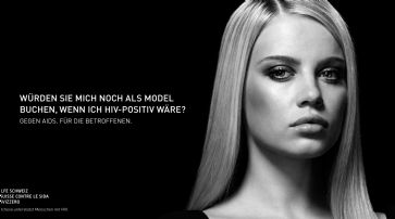 Xenia Tchoumitcheva auf einem Plakat der Aids-Hilfe Schweiz. /