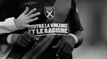 Spieler von Xamax in einem Shirt mit Aufruck «Gegen Gewalt und Rassismus». /