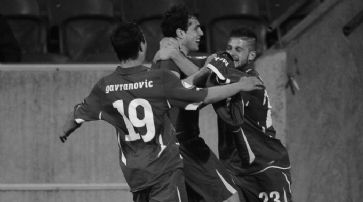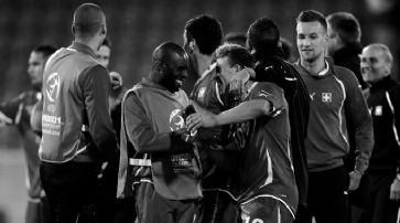 Knäbel: «Once in a Lifetime» Nur schon des sporthistorischen Hintergrunds wegen ist die Teilnahme an den Spielen 2012 in London ausserordentlich bedeutend. «Once in a Lifetime» - einmal im Leben nehme man als Fussballer an Olympischen Spielen teil, frohlockte Peter Knäbel, der Technische Verbands-Direktor, spätabends. «Die Dimensionen können die meisten Akteure wohl gar nicht erfassen. Dann kommt noch dazu, dass wir im Mutterland des Fussballs spielen werden», fuhr Knäbel fort.Innocent Emeghara (l.) und Xherdan Shaqiri feiern den Finaleinzug. /