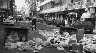 Eine von Abfällen übersäte Strasse in Napoli. /