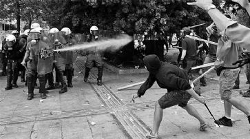 ![]() Dieses ist Voraussetzung für weitere internationale Hilfen für das vom Bankrott bedrohte Griechenland. Die Massnahmen umfassen neben Steuererhöhungen und Ausgabenkürzungen auch umfangreiche Privatisierungen. Dagegen richtet sich auch ein 48-stündiger Generalstreik der Gewerkschaften, der am Dienstag begann. Das Parlament wurde am Mittwoch durch ein grosses Aufgebot von Bereitschaftspolizisten vor Demonstranten abgeschirmt. Die so genannten «Empörten», die seit Wochen auf dem Syntagma-Platz vor dem Parlament campieren, haben dazu aufgerufen, das Gebäude der Volksvertretung einzukesseln.
