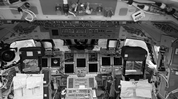 ![]() Blick in das Cockpit der Atlantis Raumfähre. /