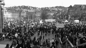 ![]() Den Veranstaltern zufolge ist «der zivile Ungehorsam das notwendige Salz in der oft reichlich öden Suppe der verstockten repräsentativen Demokratie». Die Projektmacher von «Stuttgart 21» müssten verstehen, dass der Umbau des Kopfbahnhofs in eine unterirdische Durchgangsstation ohne die Zustimmung der Menschen der Region «zwar machbar, aber nicht durchsetzbar ist». An der Demonstration nahmen neben weiteren Hochschullehrern auch Kabarettisten, Autoren und Künstler wie etwa der Schauspieler Walter Sittler teil.