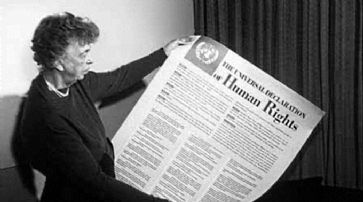 Eleanor Roosevelt mit der Menschenrechtserklärung: Schädlich für die Wirtschaft? /