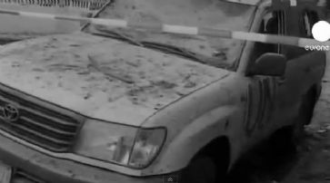 Zerstörtes Auto der UNO. / Screenshot: Euronews