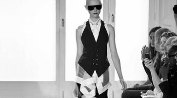 Seine Inspiration Macdonald wurde bekannt, als er für Karl Lagerfeld bei 'Chanel' arbeitete.Die Kollektion von Julien Macdonald war überwiegend schwarz-weiss. /