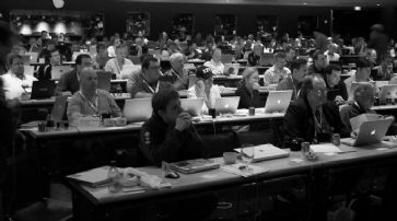 Apple-Fans: Zuhörer einer amerikanischen Technologie-Konferenz. /