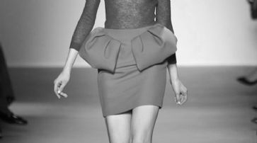 'Scott' schickte seine Models in dem verführerischen Rocker-Chic-Material für seine Herbst-Winterkollektion auf den Laufsteg. Die hautengen Röcke wurden mit Leder-BHs kombiniert (bauchfrei ist wieder in!), um ein bisschen angezogener zu sein, trugen die Models zudem schwarze Strumpfhosen.