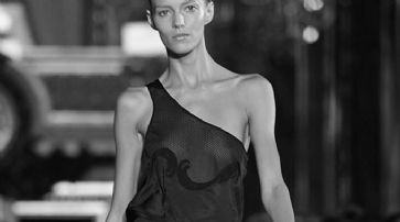 ![]() Weiter zeigte sie kragenlose Blazer, Maxi-Röcke und asymmetrische Mini-Kleider in unterschiedlichen Stoffen, Farben und Mustern. Hosenanzüge neu interpretiert McCartney zeigte klare Farben, Koralle, Kobalt, Smaragdgrün und weiss, immer wieder weiss. Paisley war DAS Muster der Kollektion. «Ich liebe Print, diese Saison wollte ich Print aber neu interpretiren, mit bekannten Mustern in ungewöhnlichen Grössen. Das Muster sollte die Farbe einführen.» Ihre berühmten Hosenanzüge zeigte sie neu in fliessender Seide und die Kleider waren schmal geschnitten mit femininen Spitzenaufnähern.