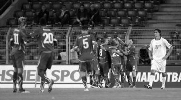 ![]() 35. Minute: Mehmedi schiesst... in die Hände von M. Bozovic.34. Minute: Nächste Möglichkeit für die Schweiz! G. Xhaka tunnelt seinen Gegenspieler und scheitert letztlich am Torhüter.33. Minute: Klasse Aktion von Derdiyok, einzig beim Abschluss hat's gefehlt.30. Minute: Kracher von Behrami aus der zweiten Reihe. M. Bozovic fliegt durch die Luft und kann parieren.28. Minute: Nun joggt der «sterbende Schwan» zur Seitenlinie hinaus und erntet die wütenden Pfiffe der Zuschauer.27. Minute: Pejovic windet sich vor Schmerzen am Boden...22. Minute: Drincic schiesst, Lichtsteiner blockt mit dem Unterarm. Das Ganze ereignete sich im Strafraum der Hausherren. Glück für die Schweiz, dass die Pfeife des Schiedsrichters stumm bleibt.21. Minute: Und die nächste Gelbe Karte ist fällig. Es trifft Behrami.15. Minute: Gute Möglichkeit für die Hausherren, doch Mehmedi haut am Ball vorbei.14. Minute: Gelbe Karte gegen Lichtsteiner wegen Meckerns.14. Minute: Starke Fussabwehr von Benaglio gegen Damjanovic. Allerdings war der Winkel für den Schützen auch gar spitz.11. Minute: Derdiyok hämmert den Ball in die Mauer.10. Minute: Zentrale Freistossposition für die Eidgenossen aus rund 30 Metern...7. Minute: G. Xhaka fasst sich ein Herz... das Leder kullert in die Arme des montenegrinischen Schlussmanns - dass kann der FCB-Youngster deutlich besser.7. Minute: Ein erstes Mal so etwas wie Torgefahr vor dem Gäste-Tor. Rodriguez' Flanke von links verpasst Derdiyok in der Mitte nur knapp.4. Minute: Das Spiel ist noch etwas zerfahren. Viele Fehlpässe auf beiden Seiten.fussball.ch: Gerade einmal vier Stammspieler sind bei Montenegro im Vergleich zum England-Spiel übrig geblieben. Eine Art B-Mannschaft also. Grund dafür ist, dass gleich sieben Akteure vorbelastet sind und bei einer Gelben Karte in der Barrage fehlen würden. Zudem ist Schweiz-Schreck Vucinic gelbgesperrt und Jovetic verletzt.Anpfiff: Benquerença gibt die Partie frei.Vor dem Spiel: Nun folgt der Schweizer Psalm.Vor dem Spiel: Los geht's mit den Nationalhymnen. Zuerst ertönt jene von Montenegro...Vor dem Spiel: Beide Aufstellungen sind bekannt.Vor dem Spiel: Das letzte EM-Quali-Spiel findet im Basler St. Jakob-Park statt.Vor dem Spiel: Der Portugiese Olegário Benquerença leitet die Begegnung.Formationen: Schweiz: Benaglio; Lichtsteiner, Von Bergen, Djourou, Rodriguez; Inler, Behrami; Shaqiri, G. Xhaka, Mehmedi; Derdiyok. Montenegro: M. Bozovic; D. Bozovic, Batak, Savic, Pejovic; Drincic, Zverotic, Beciraj, Cetkovic; Damjanovic, Dalovic.