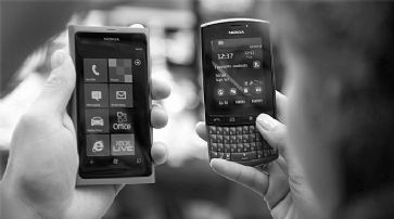Neben dem Windows Phone Lumia 800 waren auch neue Symbianhandys, wie das Asha 303, zu sehen. /