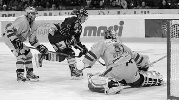 Bern - Genève-Servette 2:0 (1:0, 1:0, 0:0) PostFinance-Arena. - 15'332 Zuschauer. - SR Kurmann, Arm/Küng. Berns Vermin erzielt das 2:0. /