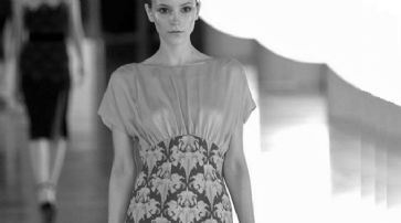 Ausgefallene und variantenreiche Tapeten-Muster schmückten die Laufstege dieser Saison und sorgten für eine fröhliche Atmosphäre. Jonathan Saunders machte es vor und präsentierte seine bunt gemusterten Exemplare in elegant und simpel geschnittenen Silhouetten. Er designte knielange Bleistift-Röcke aus marineblauen Stoffen, komplett verziert von einem gewagten Gold-Print. Der Look wurde mit blassen Tops und klobigen metallisch schimmernden Knöchel-Boots kombiniert.
