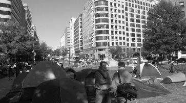 ![]() Die Holzhütte wurde von der Polizei zerstört. Die lose organisierte Bewegung «Occupy Wall Street» («Besetzt die Wall Street») richtet sich gegen die Macht der Finanzmärkte und prangert soziale Ungerechtigkeiten an. Seit Mitte September dehnten sich die Proteste von New York aus in zahlreiche Städte der USA und andere Länder aus, die genauen Ziele der Bewegung blieben aber unklar. Wegen der teils schlechten hygienischen Zustände in den Zeltlagern sowie Sicherheitsproblemen wurden die meisten Lager inzwischen geräumt. Das Lager in Washington wurde dagegen bisher geduldet.