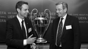 Chance für Revanche für die «Bebbi» Basel und die Bayern standen sich bereits in der letztjährigen Gruppenphase der Champions League gegenüber. Damals siegten die Münchner beide Male, in Basel allerdings knapp und mit Glück.Basel-Präsident Bernhard Heusler (l.) und Bayern-Geschäftsführer Karl Hopfner freuen sich auf die Begegnung der beiden FCB's. /
