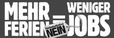 ![]() Vergleiche man diesen Betrag mit den zehn Milliarden Franken, die zu hohe Arbeitsbelastung nach sich ziehe, sei eine Woche mehr Ferien eine lohnende Investition, zeigten sich die Komiteemitglieder - Gewerkschaften, SP und Grüne - überzeugt. Drei Viertel der Bevölkerung und fast 90 Prozent der Erwerbstätigen wünschen sich mehr Ferien als die heute gesetzlich vorgesehenen vier Wochen. Nur gerade 14 Prozent sind mit dem Status quo zufrieden. Dies geht aus einer Umfrage hervor, die Travail.Suisse in Auftrag gegeben hat. 57 Prozent der Befragten würden der Initiative zustimmen. Gegner sorgen sich um Wirtschaftsstandort Die Gegner der Initiative befürchten derweil bei einer Annahme eine Schwächung der KMU und eine Verlagerung von Arbeitsplätzen ins Ausland. Das Volksbegehren führe zudem nicht zu einer Abnahme, sondern vielmehr zu einer Zunahme der Arbeitslast für die Arbeitnehmenden. Dem überparteilichen Komitee «Ferieninitiative Nein» genügt der heute gültige gesetzliche Anspruch auf vier Wochen Ferien (fünf Wochen für Lehrlinge). Umso mehr, als dass die Unternehmen den Arbeitnehmenden zusätzliche Ferien gewähren würden und die durchschnittliche Feriendauer 4,8 Wochen beziehungsweise 5,4 Wochen für über 50-Jährige betrage. Das überparteiliche Komitee setzt sich zusammen aus Vertretern aller bürgerlichen Parteien. Auch der Wirtschaftsdachverband Economiesuisse, der Arbeitgeberverband sowie der Gewerbeverband sprechen sich gegen eine Erhöhung des gesetzlichen Ferienanspruches aus.