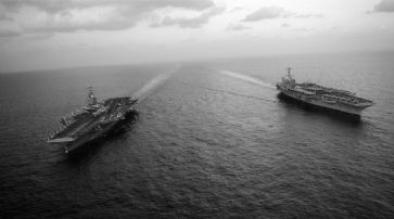 Dies sagte ein Sprecher des US-Verteidigungsministeriums. Die Fahrt sei ohne Zwischenfälle verlaufen. Begleitet wurde der Flugzeugträger von einem US-Kreuzer und zwei US-Zerstörern.