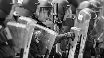 Forderungen der SFL nicht erfüllt Die Kantone sind mit dieser Lösung nicht auf die Forderungen der Swiss Football League (SFL) eingegangen. Diese hatte in der Vernehmlassung verlangt, dass nur Risikospiele bewilligt werden müssen. Auch hatte sich die SFL gewünscht, dass die Bewilligung für eine ganze Saison oder zumindest für eine Meisterschaftsphase erteilt wird. Gemäss SFL ist sonst die Meisterschaft in Gefahr. Laut dem St. Galler Polizeidirektor Nino Cozzio hat sich dieses «Schreckgespenst» in St. Gallen aber nicht bewahrheitet.Schwer bewaffnete Polizisten an einem Match. /