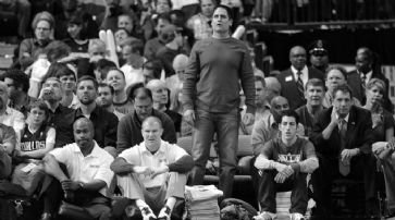 Dallas Mavericks-Besitzer Mark Cuban (stehend) kritisierte die Schiedsrichter. /