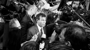 Nasheed war der erste demokratisch gewählte Staats- und Regierungschef des Inselstaats im Indischen Ozean. International bekannt wurde er vor allem durch sein Engagement im Kampf gegen den Klimawandel. Sein bisheriger Stellvertreter, Mohammed Waheed Hassan, übernahm die Amtsgeschäfte. Er gilt als westlich geprägt und war jahrelang für das UNO-Kinderhilfswerk UNICEF tätig. Zudem war er der erste Fernsehmoderator in der Geschichte der Malediven. Armee schiesst auf Polizei Auslöser der politischen Krise war die Verhaftung eines Richters, den Nasheed als Marionette seines Vorgängers Maumoon Abdul Gayoom bezeichnet hatte. Mohammed Nasheed beugt sich den Protesten. / Foto: tcktcktck campaign/ADAM WELZ Public Domain