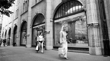 ![]() Apple erreiche sogar bis 225'000 Franken Umsatz pro Quadratmeter. Dies liege daran, dass in Zürich die weltweit höchste Kaufkraft vorhanden sei. Mit solchen Zahlen können viele Fachgeschäfte nicht mehr mithalten. Inzwischen werden von den 140 Ladenflächen an der Bahnhofstrasse nur noch 13 Prozent individuell genutzt. 87 Prozent der Flächen werden von Ladenketten gemietet.